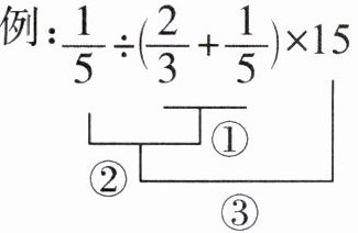 例:$\frac{1}{5}÷(\frac{2}{3}+\frac{1}{5})×15$