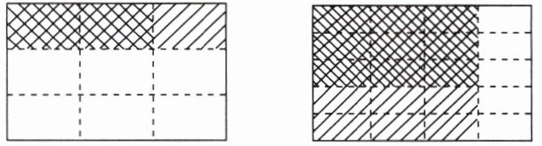 )。(2)比较$\dfrac{2}{5}×\dfrac{5}{8}$和计算结果,你有什么发现?