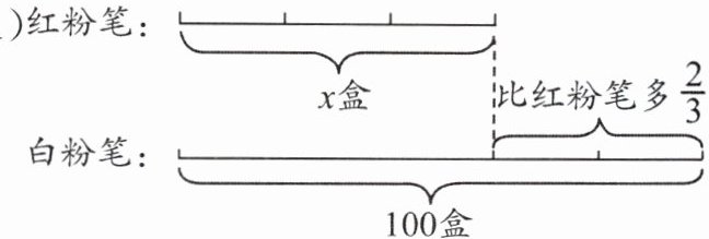 (1)红粉笔的盒数+红粉笔盒数的$\frac{2}{3}=$白粉笔的盒数