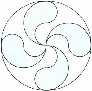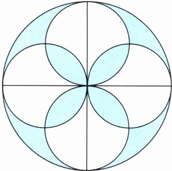 图中大圆内部的每个“水滴”是由三个半圆围成的,其中大半圆的直径等于大圆的(
