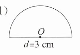)cm。(1)$3.14× 3÷ 2+3=7.71(cm)$