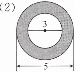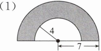 (1)3.14×(7²-4²)×$\frac{1}{2}$=51.81(cm²) (2)3.14×($\frac{5}{2}$)²-3.14×($\frac{3}{2}$)²=12.56(cm²)