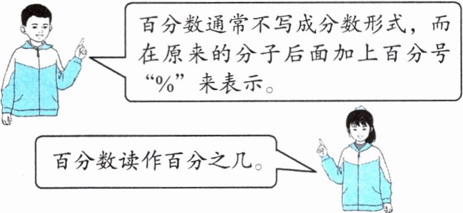这三个数都带有“%”,像这样的数叫作百分数。百分数表示一个数是另一个数的百分之多少。