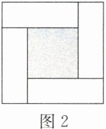 (2) 选取$4$张卡片③,在纸上按图2的方式进行拼图,可以得到中间阴影部分为正方形。若将阴影部分正方形的面积用两种不同的方法表示,则可验证等式: