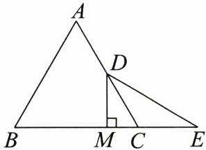 18. (9 分)如图,在等边三角形$ABC$中,$D$是$AC$的中点,$E$是$BC$延长线上的一点,且$CE = CD$,$DM\perp BC$,垂足为$M$.求证:$M$是$BE$的中点.