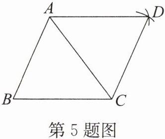 5. 如图,以$\triangle ABC的顶点A$为圆心,以$BC$为半径作弧;再以顶点$C$为圆心,以$AB$为半径作弧,两弧交于点$D$;连接$AD$,$CD$。若$\angle B= 65^{\circ}$,则$\angle ADC$的大小为