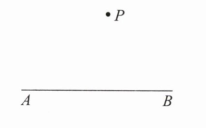 8. 如图,点$P是直线AB$外一点,利用直尺和圆规过点$P作直线AB$的平行线(利用“内错角相等,两直线平行”作图)。