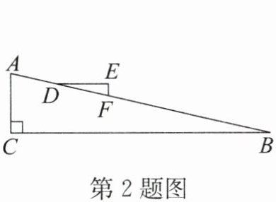 2. (跨学科融合)物理实验中,小明研究一个小木块从斜坡上滑下时的运动状态。如图,在Rt△ABC中,∠C=90°,∠A=77°,小木块(△DEF)在斜坡AB上,且DE//BC,则∠EDF的度数为(
