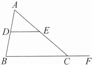 3. 如图,在△ABC 中,点 D,E 分别在 AB,AC 上,F 为 BC 延长线上的一点,若∠ACF = 139°,∠ADE = ∠B = 79°,则∠AED 的度数是