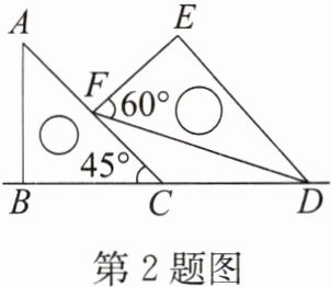 2. 将一副三角尺按照如图所示的方式摆放,点 B,C,D 在同一条直线上,∠CDF = 18°,则∠AFE 的度数为(