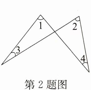2. 如图,∠3 = 20°,∠4 = 30°,则∠1 - ∠2 =