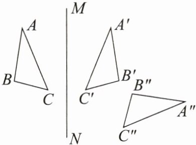 8. 如图,$\triangle ABC与\triangle A'B'C'关于直线MN$对称,$\triangle A'B'C'与\triangle A''B''C''关于直线EF$对称.