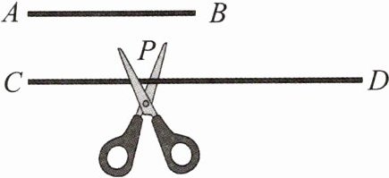 (2)如图,小亮先把木棒剪成 $ AB $ 和 $ CD $ 两段,已知 $ AB = 4 \mathrm{cm} $,$ CD = 8 \mathrm{cm} $,现要将木棒 $ CD $ 从点 $ P $ 处剪开,使得三根木棒首尾顺次相接能组成三角形,请直接写出符合条件的 $ CP $ 的整数长度。
