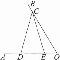 6. 如图,已知 $ \angle O = 60^{\circ} $,点 $ C $ 在 $ OB $ 上,$ OC = 8 $,点 $ D $,$ E $ 在 $ OA $ 上,且 $ CD = CE $。若 $ DE = 4 $,则 $ OE $ 的长为