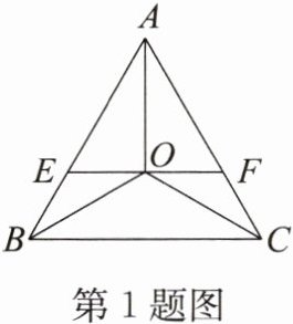 1. 如图,等边三角形 $ ABC $ 的三条角平分线相交于点 $ O $,过点 $ O $ 作 $ EF // BC $ 交 $ AB $ 于点 $ E $,交 $ AC $ 于点 $ F $,那么这个图形中的等腰三角形共有(
