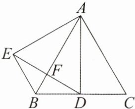 3. 如图,$ \triangle ABC $ 是等边三角形,$ AD $ 是 $ \triangle ABC $ 的角平分线,$ \triangle ADE $ 是等边三角形,$ AB $ 与 $ ED $ 相交于点 $ F $,有下列结论:① $ AD \perp BC $;② $ EF = FD $;③ $ BE = BD $。其中正确的个数为(