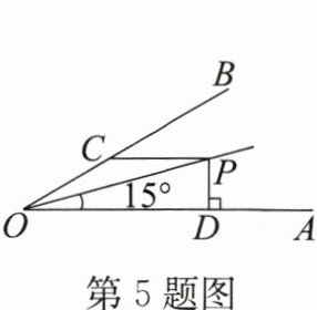 5. 如图,$ OP $ 平分 $ \angle AOB $,$ \angle AOP = 15^{\circ} $,$ PC // OA $,$ PD \perp OA $ 于点 $ D $,$ PC = 4 $,则 $ PD = $