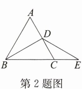 2. 如图,$ \triangle ABC $ 是等边三角形,$ AB = 6 $,$ BD $ 是 $ \angle ABC $ 的平分线,延长 $ BC $ 到点 $ E $,使 $ CE = CD $,则 $ BE $ 的长为(