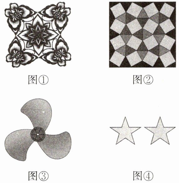 问题 1:图①剪纸中的蝴蝶、图②中的三角形和正方形、图③电扇的叶片、图④两个五角星的共同特点是