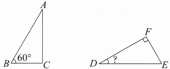 全等三角形的对应角相等,因为$Rt\triangle ABC\cong Rt\triangle DEF$,所以$\angle B=\angle E = 60^{\circ}$,$\angle C=\angle F = 90^{\circ}$。