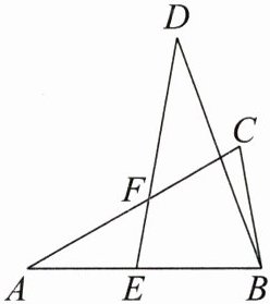 3. 如图,已知△ABC≌△DEB,点 E 在 AB 上,DE 与 AC 相交于点 F,若 DE =22,BC =12,∠D =30°,∠C =70°。