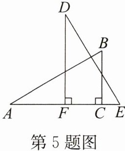 5. 如图,BC⊥AE 于点 C,DF⊥AE 于点 F,△ABC≌△DEF。若 DF =5,BC =3,CF =2,则 AE 的长为。