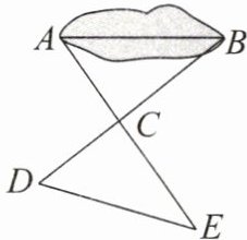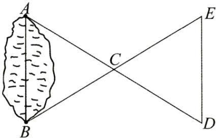 (2)在平地上取一个可以直接到达点A,B 的点C,在射线AC上取一点D,使CD=CA,在射线BC上取一点E,使CE=CB.这时测出DE的长为a m,则AB的长就是a m.
