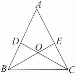 4. 如图,在△ABC中,点D,E分别在AB,AC上,AB = AC,BD = CE,BE与CD交于点O。