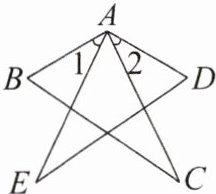 2. 如图,$AB = AE$,$\angle 1 = \angle 2$,$\angle B = \angle E$. 求证:$BC = ED$.