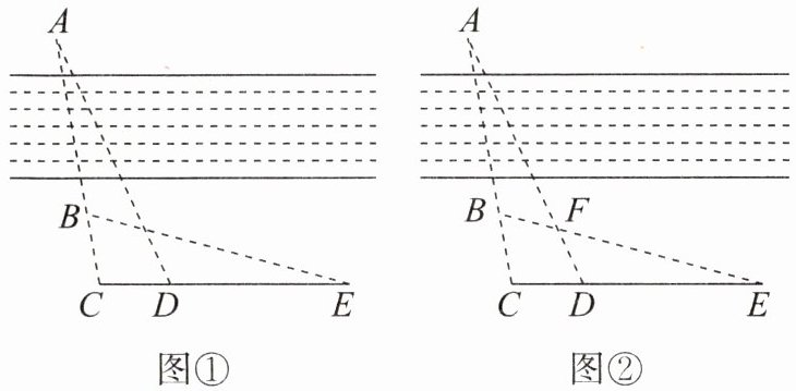 学习了全等三角形的判定后,某数学兴趣小组同学就“测量河两岸$A$,$B$两点间的距离”这一问题,设计了如下方案,如图①.