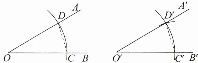 3. 已知$\angle AOB$,“作一个角等于已知角,即作$\angle A'O'B' = \angle AOB$”的尺规作图痕迹如图所示.该尺规作图的依据是(