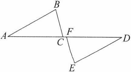 所以AF−CF=CD−CF,即AC=DF.在△ABC和△DEF中,$\begin{cases} ∠A = ∠D, \\ ∠B = ∠E, \\ AC = DF, \end{cases}$