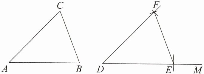 1. 如图,已知$\triangle ABC$,用直尺和圆规按以下步骤作出$\triangle DEF$.