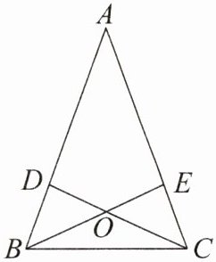 4. 如图,在$\triangle ABC$中,$AB = AC$,点$D$,$E$分别在$AB$,$AC$上,$BD = CE$,$BE$,$CD$相交于点$O$.