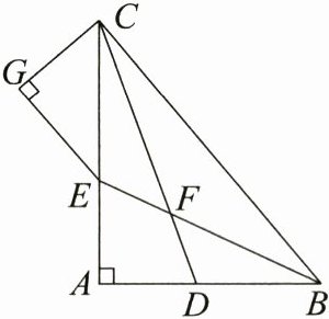 21. (10 分)如图,在$Rt\triangle ABC$中,$∠A = 90^{\circ}$,$CD$,$BE$是角平分线,它们相交于点$F$,$EG// BC$,$CG⊥EG$,垂足为$G$.