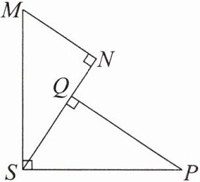 证明:因为MS⊥PS,MN⊥SN,PQ⊥SN,所以∠M+∠MSN=∠MSN+∠PSQ,所以∠M=∠PSQ.在△MNS和△SQP中,$\begin{cases}∠M=∠PSQ,\\∠MNS=∠SQP,\\MS=SP,\end{cases}$所以△MNS≌△SQP(AAS).