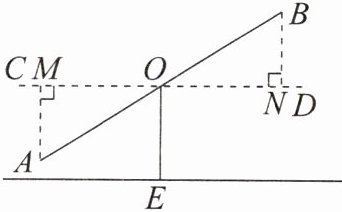 【例】小明和小颖玩跷跷板时的示意图如图所示,点$O$是跷跷板$AB$的中点,支柱$OE$与地面垂直,且$OE$的长度为$50\ cm$,当小明(点$A$)到水平线$CD$的距离$AM$为$40\ cm$时,小颖(点$B$)到地面的距离为(
