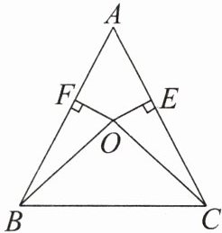 证明:连接OA(图略).因为点O到AB,AC的距离相等,即OF=OE,所以AO平分∠BAC,即∠BAO=∠CAO.在Rt△BOF和Rt△COE中,$\begin{cases}OB=OC,\\OF=OE,\end{cases}$所以Rt△BOF≌Rt△COE(HL).所以∠FBO=∠ECO.在△AOB和△AOC中,$\begin{cases}∠BAO=∠CAO,\\∠ABO=∠ACO,\\OB=OC,\end{cases}$所以△AOB≌△AOC(AAS).所以AB=AC.