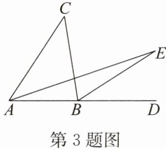 3. 如图,点$E是\triangle ABC的外角∠CBD$内部一点,满足$∠CAB= 3∠EAB$,$∠CBD= 3∠EBD$。若$∠C= 42^{\circ}$,则$∠E$的度数是