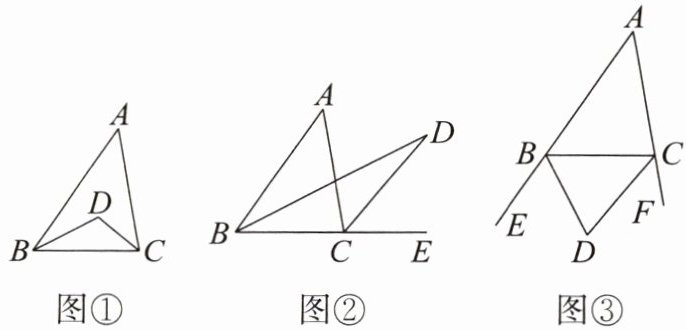 (3)若把图①中“$CD$,$BD分别是∠ACB和∠ABC$的平分线”改成“$CD$,$BD分别是\triangle ABC的外角∠BCF和∠CBE$的平分线”,如图③,怎样用含$\alpha的式子表示∠CDB$?