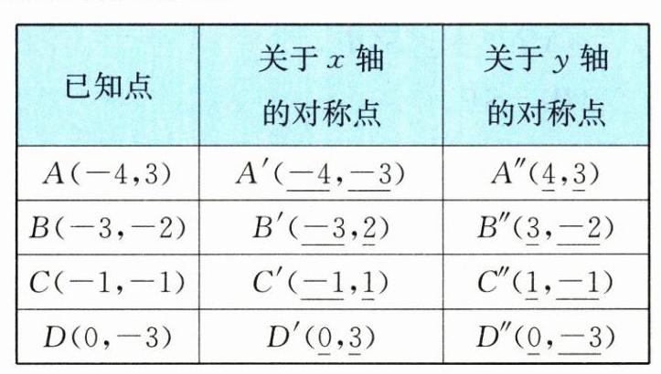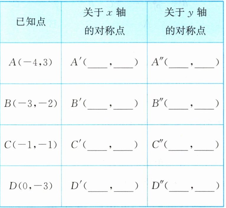 问题1:在如图所示的平面直角坐标系内画出上述已知点以及它们关于$x$轴和$y$轴的对称点.