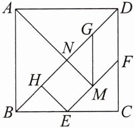 6. (传统文化)一个七巧板如图所示,这七块刚好拼成一个正方形.图中有全等的三角形和全等的四边形,如$\triangle ABN \cong \triangle ADN$.