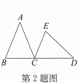2. 如图,$\triangle ABC \cong \triangle DEC$,$B$,$C$,$D$三点在同一条直线上,$E和B$是对应点,$\angle A与\angle D$是对应角,$CE = 3$,$AC = 4$,则$BD$的长为(