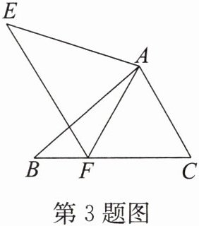 3. 如图,$\triangle ABC \cong \triangle AEF$,$AB = AE$,$\angle B = \angle E$,有以下结论:①$AC = AE$;②$\angle FAB = \angle EAB$;③$EF = BC$;④$\angle EAB = \angle FAC$.其中正确的个数是(