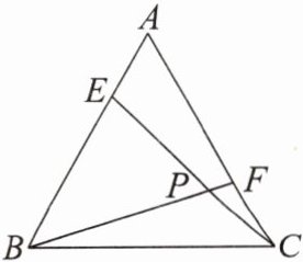 【例 1】如图,$E$,$F$ 分别是等边三角形 $ABC$ 的边 $AB$,$AC$ 上的点,且 $BE = AF$,$CE$,$BF$ 交于点 $P$.