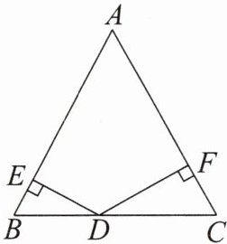 【例3】如图,△ABC是等腰三角形,AB = AC,D是底边BC上任意一点,DE⊥AB于点E,DF⊥AC于点F,若AB边上的高是6,求DE + DF的值。