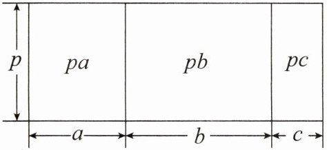 问题1:大长方形的长为 $a + b + c$,宽为 $p$,则这个大长方形的面积为