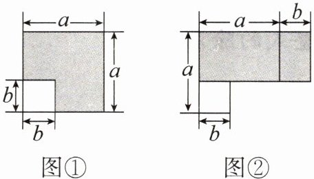 如图①所示,边长为 $a$ 的大正方形中有一个边长为 $b$ 的小正方形。