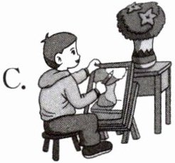 1. sing—B 2. draw—C 3. play—A 4. speak—D