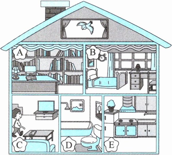 二、根据下面每个人说的话,猜猜他们描述的分别是哪个房间。